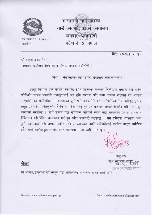 कामका लागि तयारी अवस्थामा रहने सम्बन्धमा !!