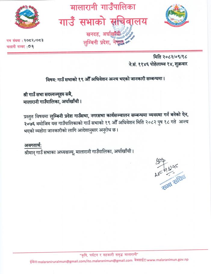 गाउँ सभा अन्त्य सम्बन्धी सूचना ।