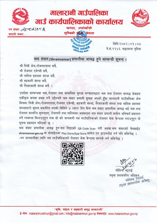 श्रम संसार(Shramsansar) प्रणालीमा आबद्ध हुने सम्बन्धी सूचना !